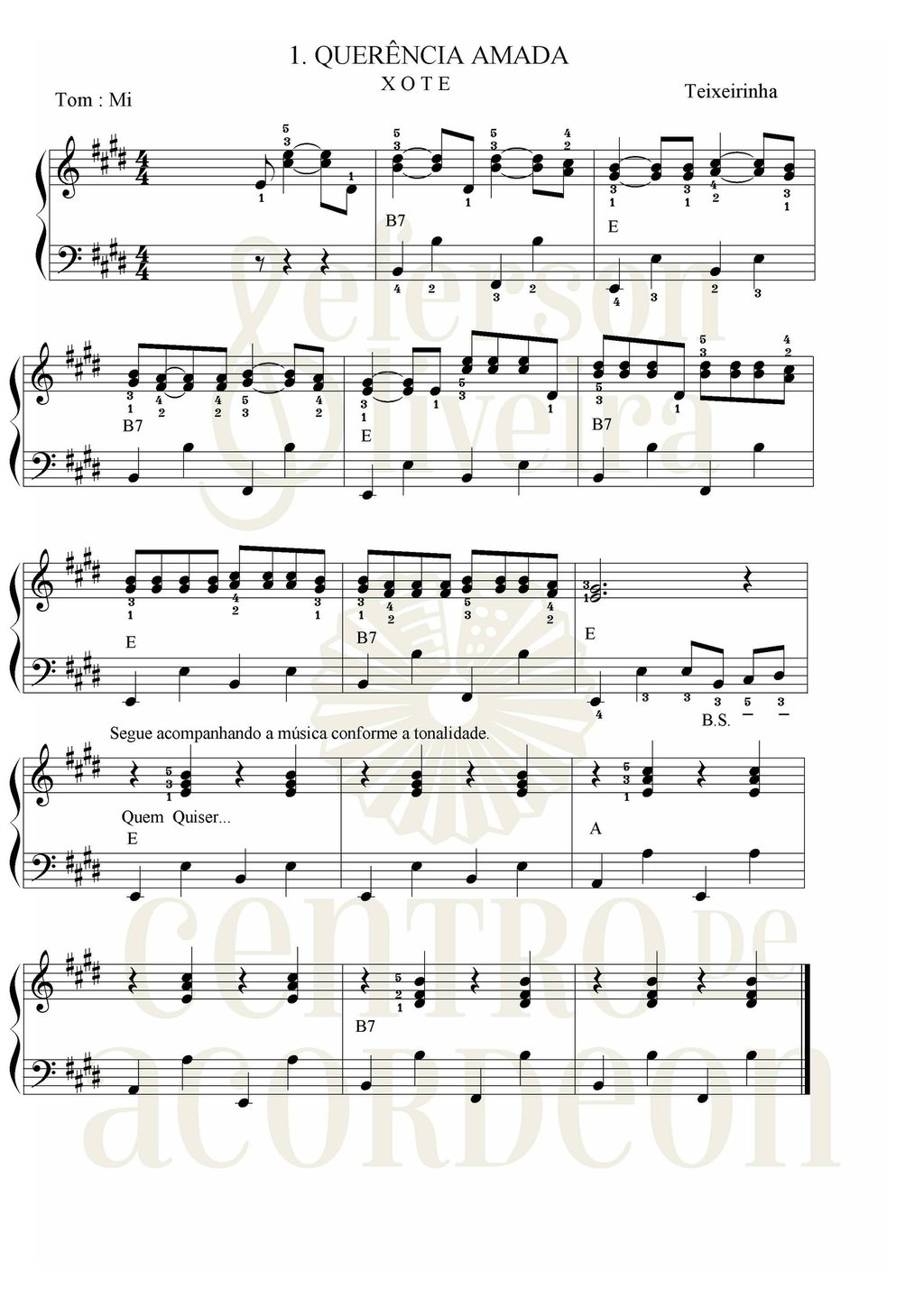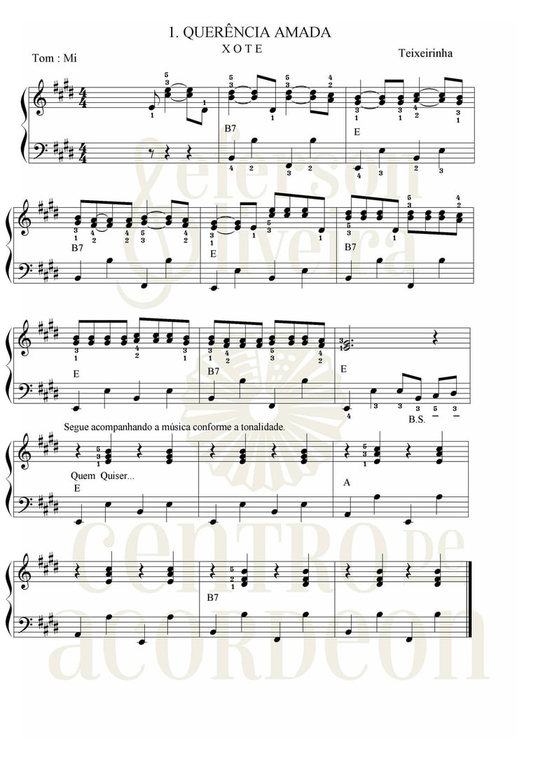 Adquira partituras musicais específicas para acordeon, escritas dentro da metodologia e com dedilhado.